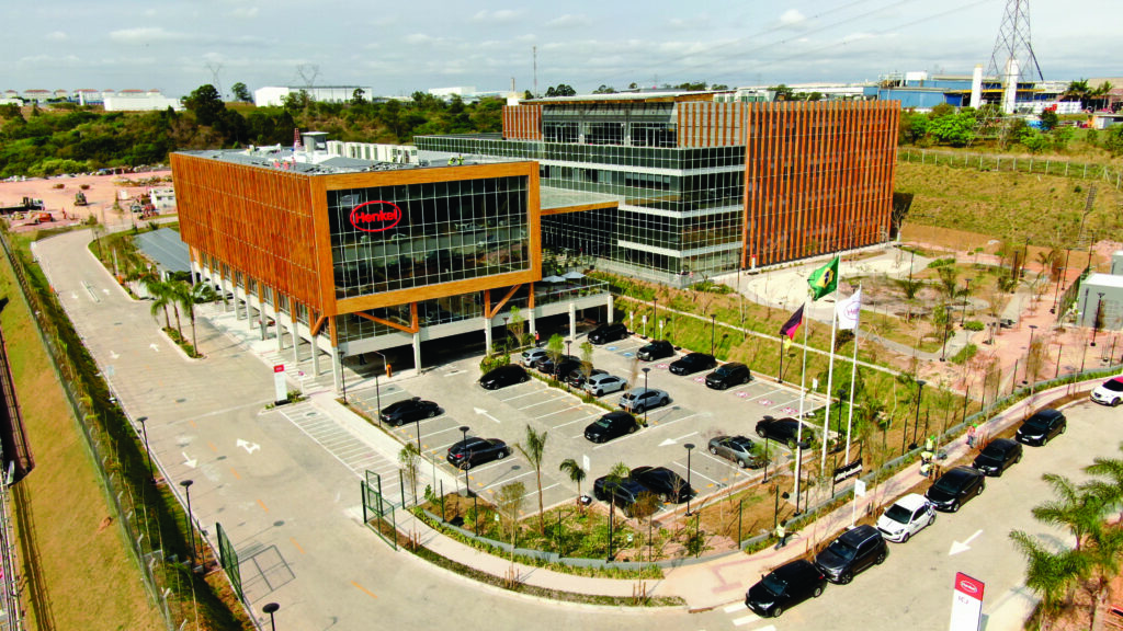 Em relação ao impacto ambiental, o Henkel Latam Inspiration Center, vencedor na categoria Edificações, foi concebido com base em princípios sólidos de sustentabilidade. “O uso misto de estrutura industrializada em concreto pré-fabricado e madeira engenheirada, composta por camadas de madeira certificada de manejo responsável, tem a expectativa de capturar cerca de 500 toneladas de CO₂ da atmosfera. Também foram instalados mais de 400 painéis solares, garantindo energia 100% limpa no complexo, além de práticas de reutilização de água. O empreendimento foi projetado para obter as certificações LEED Gold e WELL Silver”, conclui Íria.