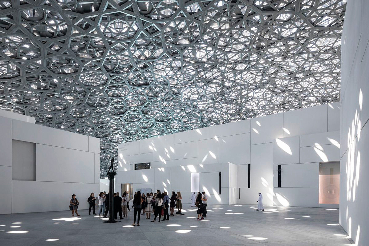 O concreto bruto é a marca registrada do estúdio Juergen Teller, que leva o mesmo nome do artista e fotógrafo de origem alemã. Construída no subúrbio de Londres, a obra foi projetada por Dan Pearson, da 6a architects. A edificação destoa das construções antigas do pós-Segunda Guerra Mundial que ocupam a região. Bem diferente do local onde se encontra a primeira filial do Louvre, construída na ilha de Saadiyat, em Abu Dhabi. Trata-se de um complexo de oito museus em uma única estrutura, ao custo de 15 bilhões de reais, somando o projeto arquitetônico de Jean Nouvel e todas as obras de arte que o prédio vai receber. A estrutura revestida por concreto branco recebeu uma cobertura formada por painéis de aço e alumínio perfurados para projetar a luz natural para dentro dos edifícios.